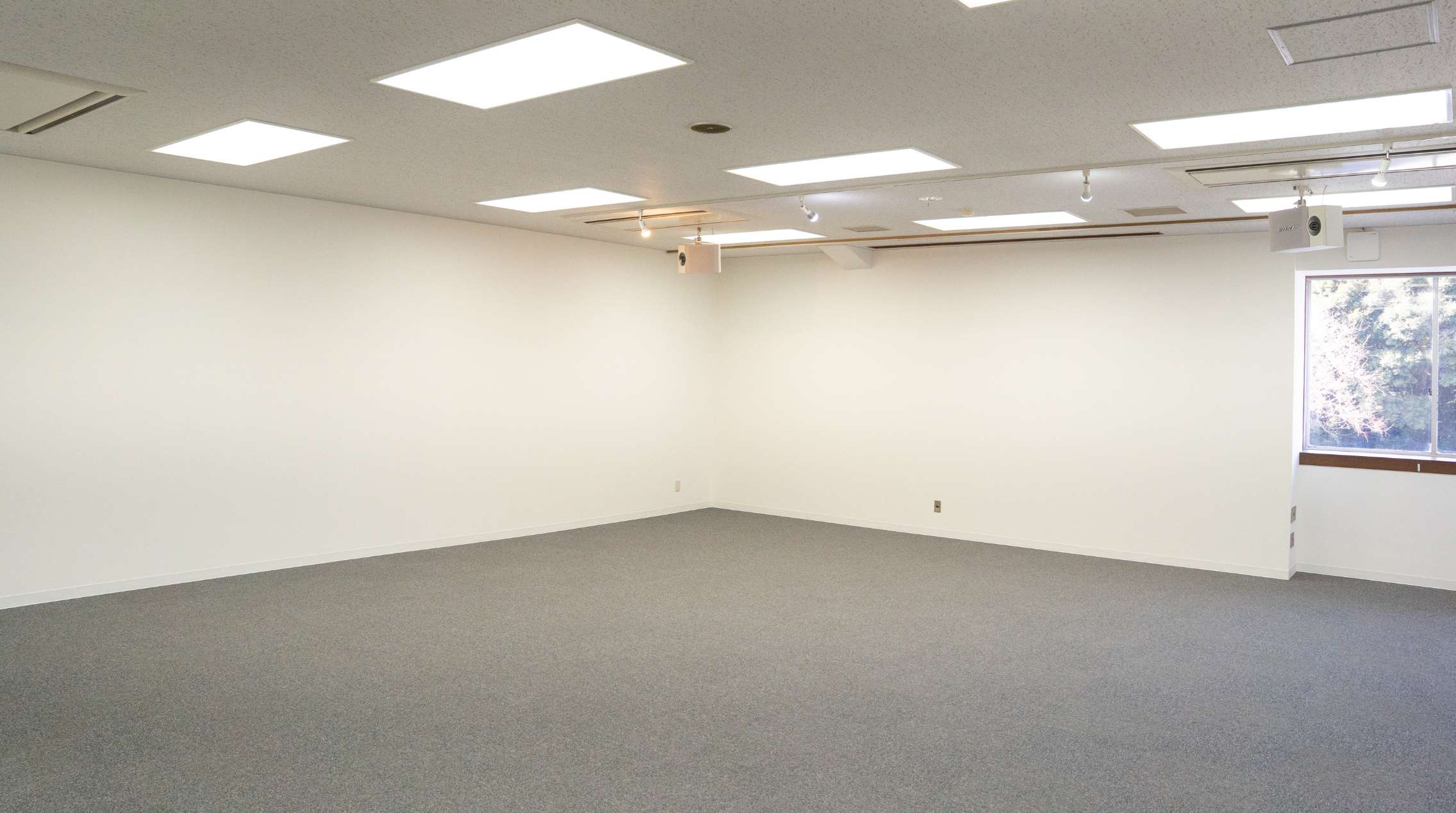 78㎡の明るく開放的な空間。スクール・シアター・円卓など柔軟にレイアウト可能で、講演会、会社説明会、研修などに適したサイズです。