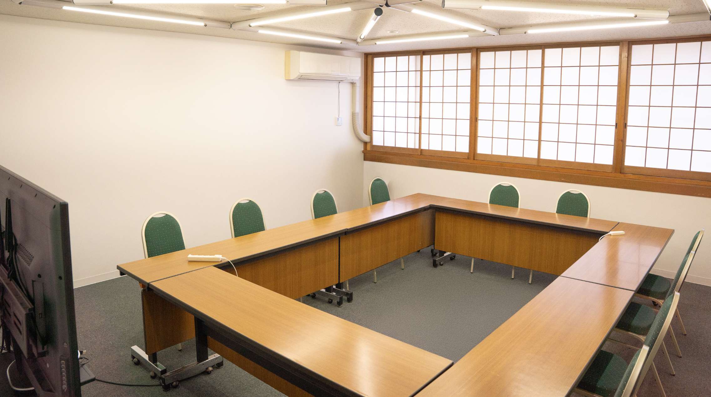 39㎡の落ち着いた会場は、社内会議や小規模ワークショップ、面接、勉強会などに使いやすいサイズです。